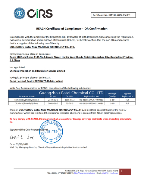 Китай Guangzhou Batai New Material Technology Co., Ltd. Сертификаты